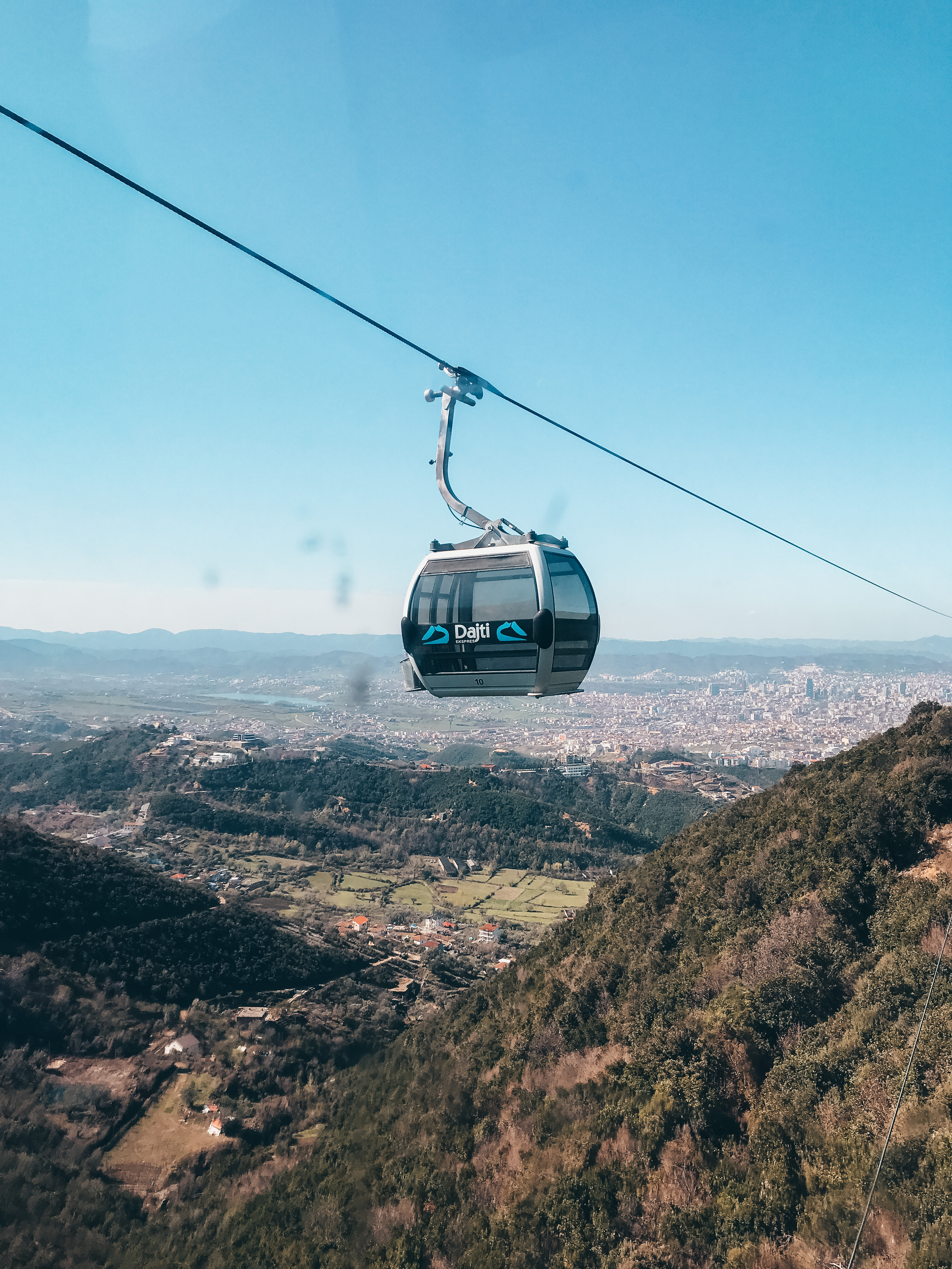 Chcete na chvilku utéct ruchu velkoměsta a podívat se do hor? Pak pro vás máme super tip na celodenní výlet. Nemusíte při tom cestovat hodiny, stačí popojet kousek za město! Ze zastávky „Porcelani“ v centru města jede autobus na zastávku „Teleferikum“ (cena 40 LEK). Odtamtud je potřeba dojít pár desítek metrů pěšky k lanovce „Dajti Ekspres,“ která je zároveň nejdelší na Balkáně. Zpáteční jízdenka stojí 800 LEK. Cesta lanovkou trvá něco kolem 20 minut a jsou z ní krásné výhledy. Zajímavé je, že kabiny lanovky byly vyrobené v Rakousku a i když se v Tiraně nelyžuje, mají stále držáky na lyže. Lanovka vás dopraví do krásného národního parku, kterému bývá přezdíváno „Balkón Tirany“. Někdo nám vyprávěl, že obzvlášť v zimě jsou lanovky přeplněné, protože je to pro místní jedna z mála možností, jak si pořádně užít sněhové nadílky.