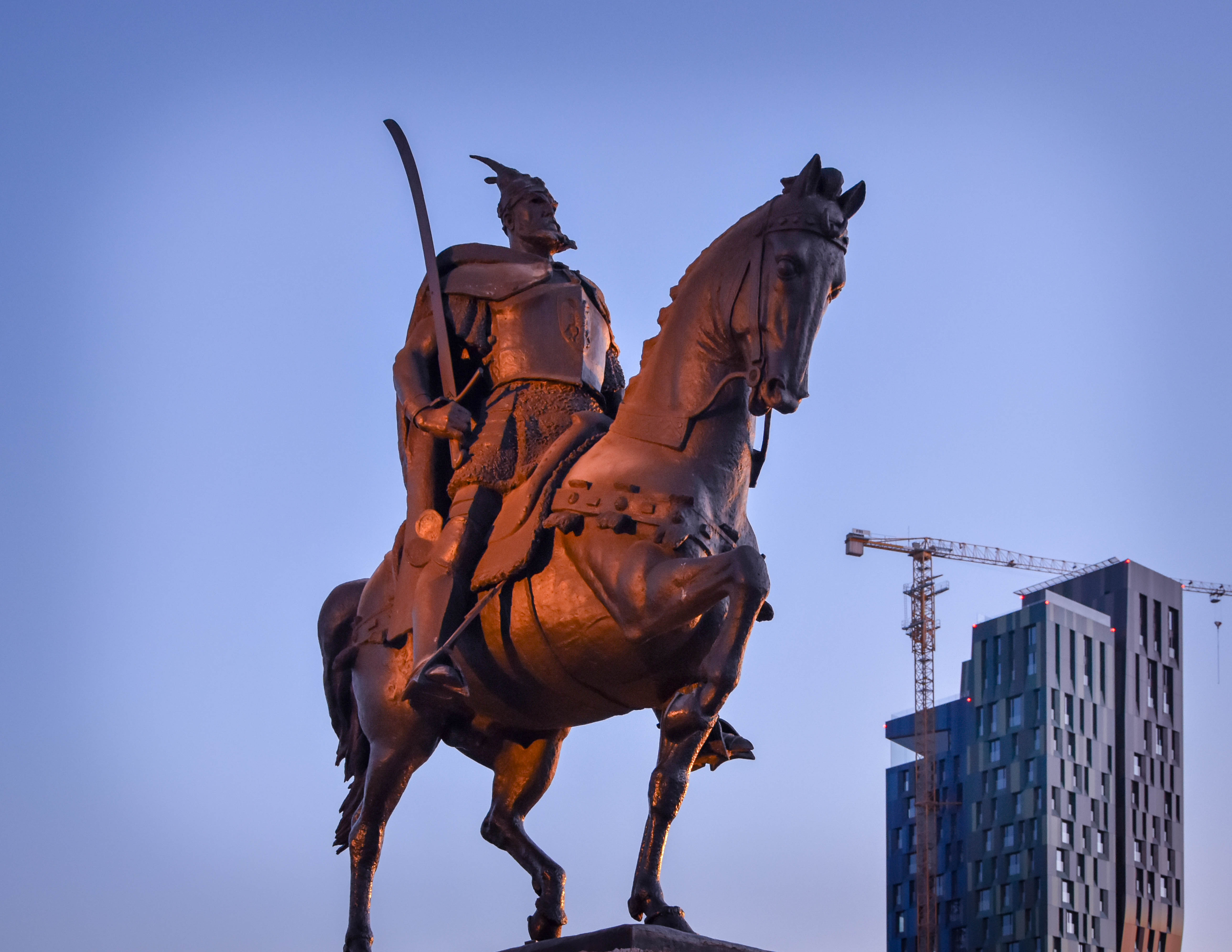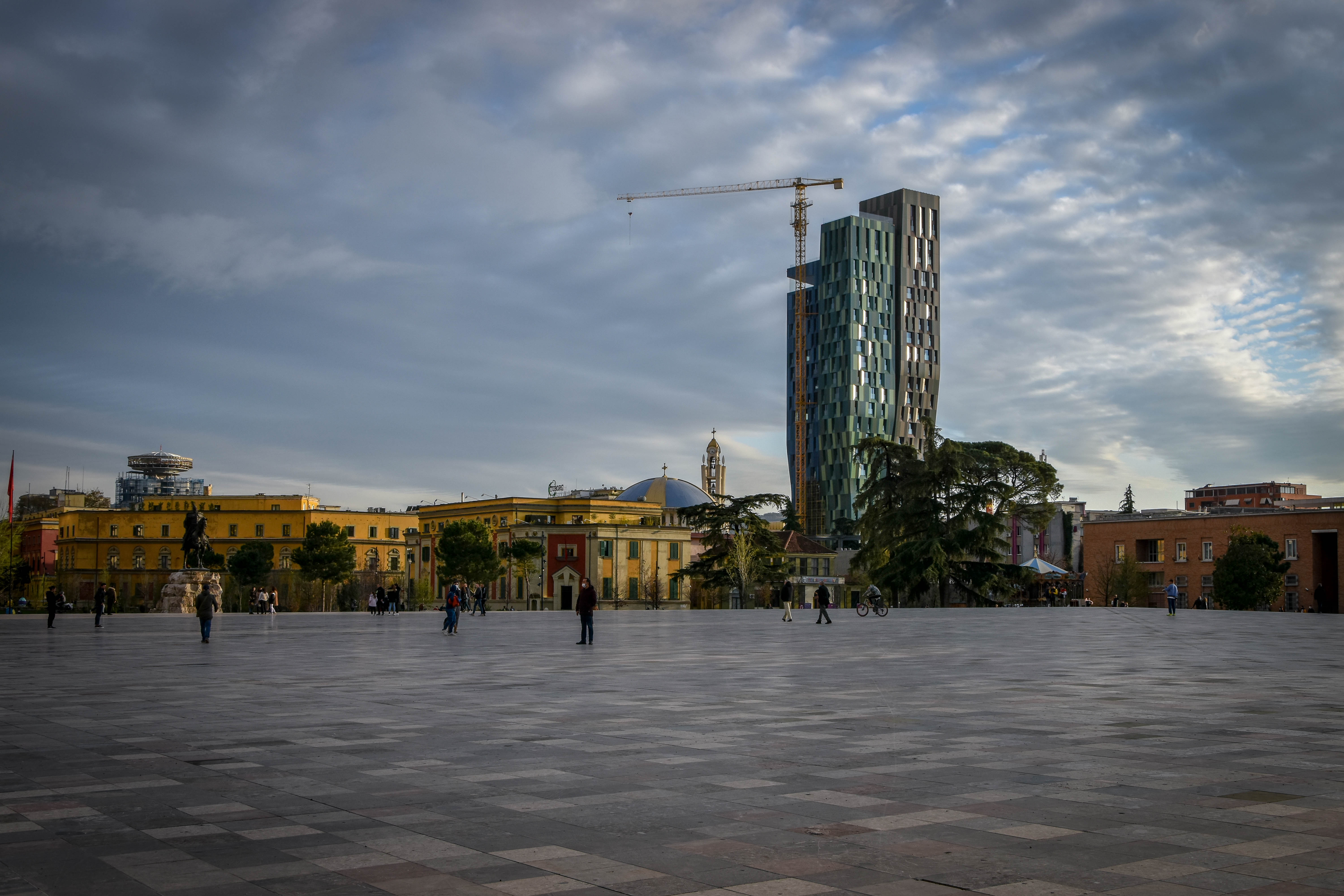 Na Skandenbergově náměstí se soustředí nejdůležitější vládní, ale i kulturní budovy. Najdete tu například Národně-historické muzeum, Palác kultury či Edhem-beyovu mešitu. Náměstí dominuje socha národního hrdiny – Skandenberga. Náměstí je obrovské, údajně největší v celé Albánii. Pokud na něm stojíte s rozhlédnete se po okolí, panorama dokreslují jeřáby. V Tiraně se všude staví a jsme moc zvědaví, jak se její podoba za pár let změní.