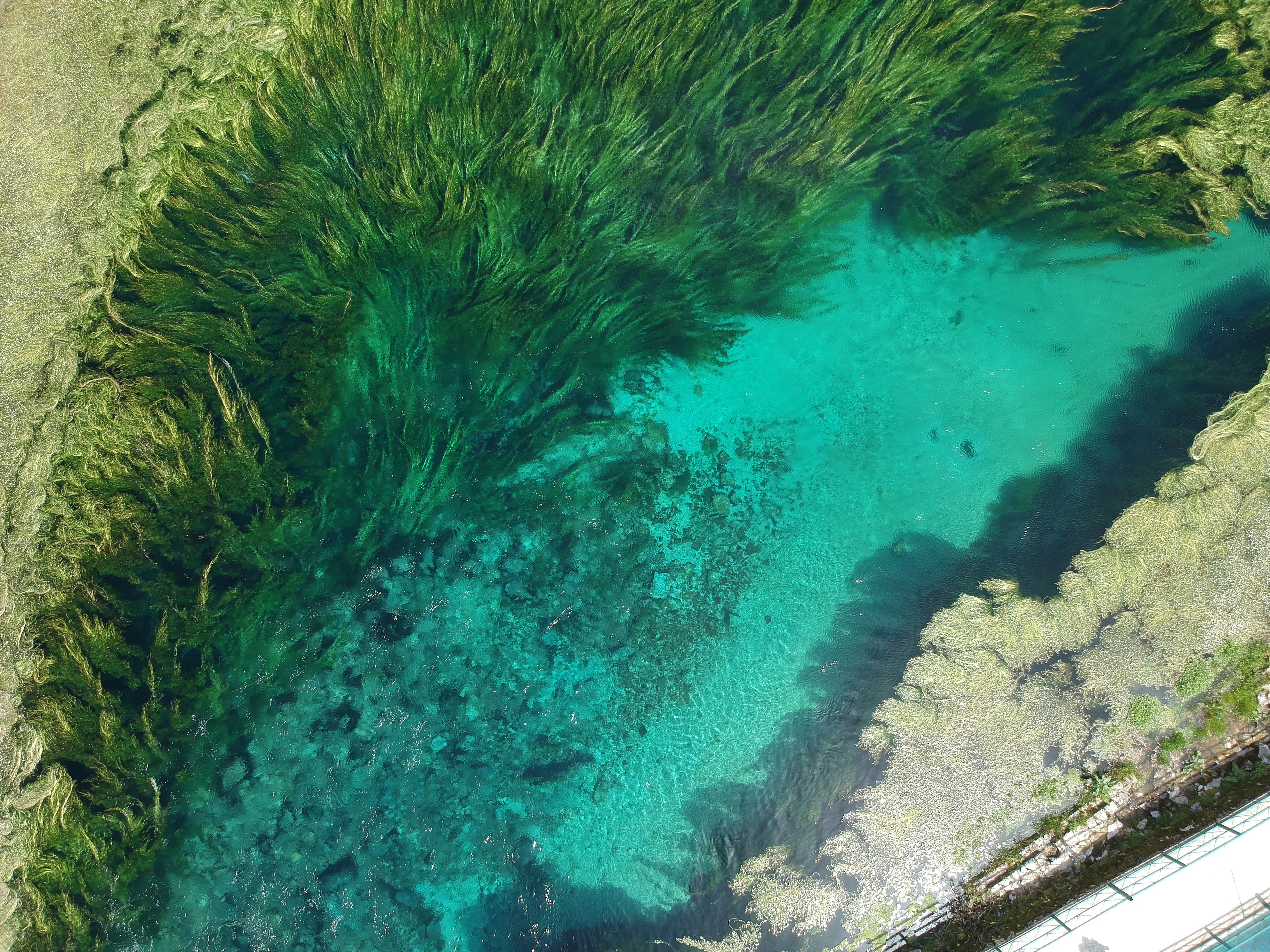 V jezeře bývalo i potápečské centrum, dnes je jeho bývalá budova spíš jeden velký „odpadkový koš“. Jezero je plné takových zvláštních rostlin a vypadá to opravdu kouzelně. Museli jsme se na něj mrknout i z ptačí perspektivy :-). Moc lidí o tomto místě neví a to je podle nás obrovská škoda.
