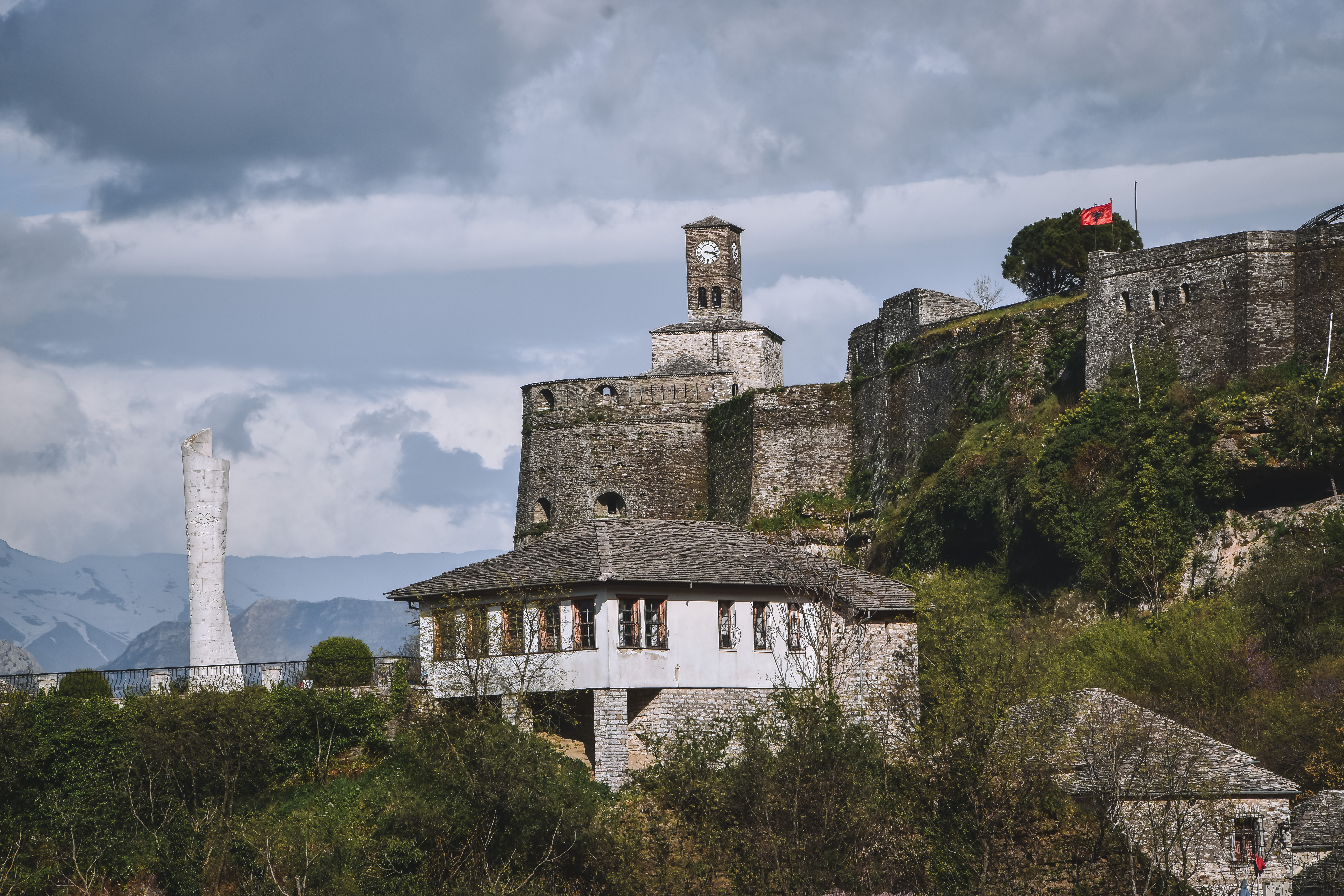 Hrad/ pevnost Gjirokaster je hlavní dominantou města. Opět se připravte na pořádný výšlap, v Gjirokasteru je prostě všechno do kopce. První zmínky o pevnosti byly už ve 12. století, ikonická hodinová věž byla přistavěna osmanským vládcem Ali Pashou po roce 1811. Přistavěl také 10 km dlouhý akvadukt, který na hrad přiváděl vodu z hor. Mezi lety 1930 -1960 hrad sloužil jako vězení. Dnes se v hradu nachází vojenské muzeum a pravidelně se tu koná festival.