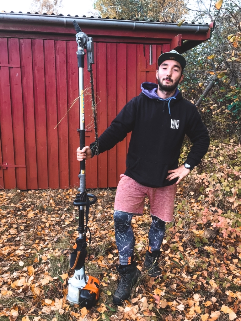 Jiné dny jsme sbírali v sadu u souseda – to byl náš nejméně oblíbený.. soused se o sad nestaral a nechal ho prorůst trny. Být šípkovou Růženkou, tak spím nejméně 500 let.. protože takhle vyšperkovaný ruce od trní jsem dlouho neměla. Prakticky každý den jsme si s křovinořezem, hráběmi a zahradnickými nůžkami hráli na zahradníka.. nebo spíš Indiana Jonese, co se prosekává džunglí. O zábavu nebyla nouze 🙂